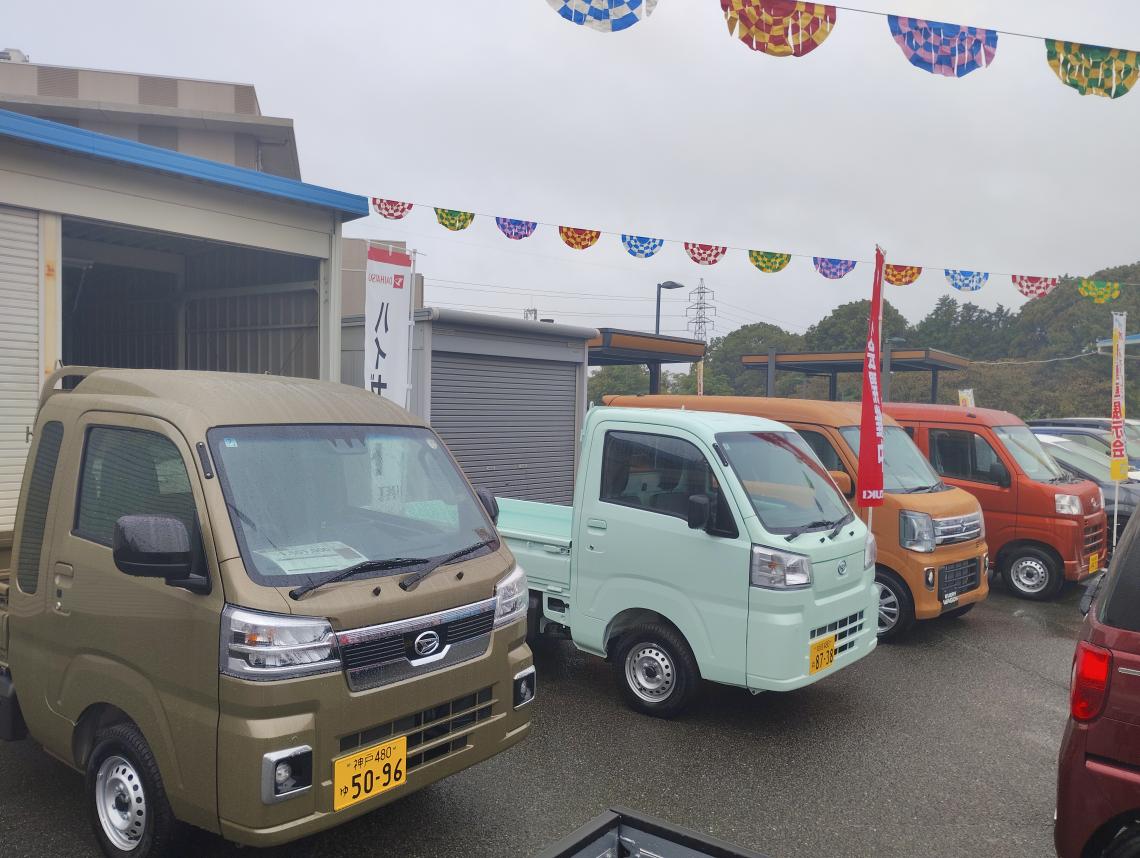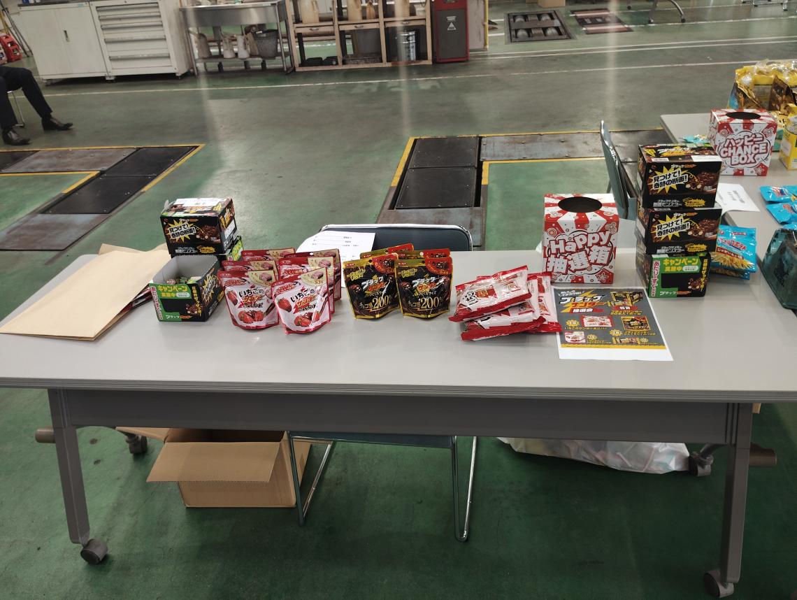 あいにくのお天気ですが、無料のお菓子のくじ引きもやってますので