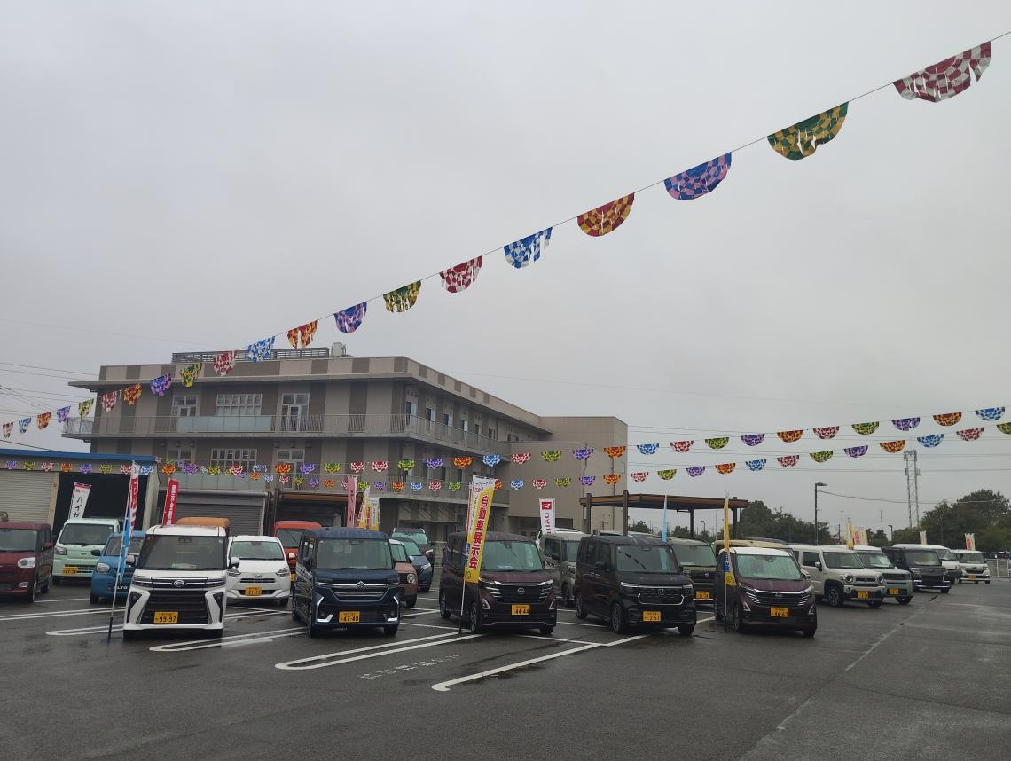 あいにくのお天気ですが、無料のお菓子のくじ引きもやってますので